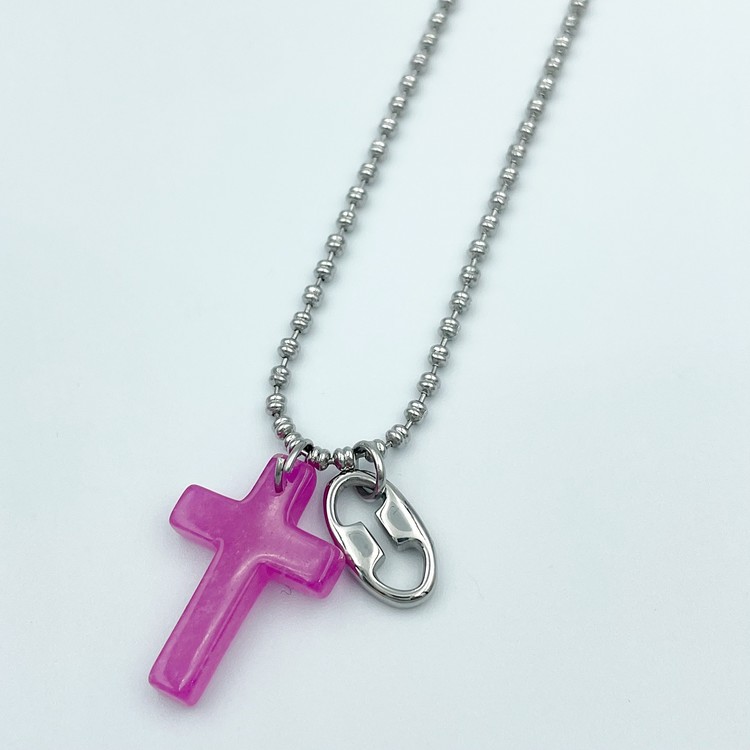 - pink cross : 핑크 컬러 스톤 십자가형 펜던트 (합성 스톤) (16mm x 23mm)