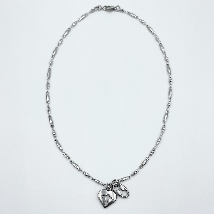 크로스 펀칭 하트 펜던트와 옌드의 로고 펜던트가 레이어링 되어