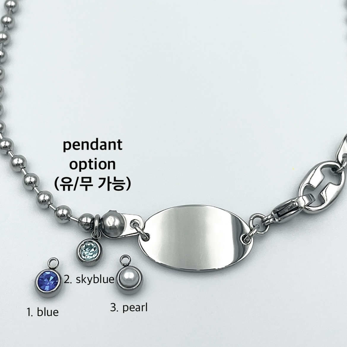* 펜던트 추가 옵션 (유/무 가능) : blue, skyblue, pearl, 펜던트 X (4가지 중 선택)