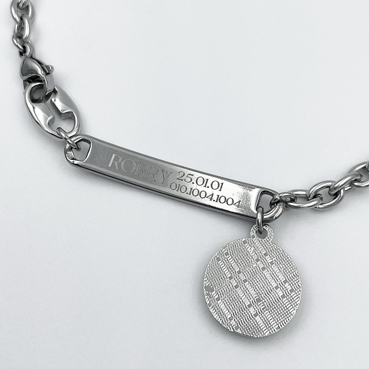* 각인 멘트: 원하시는 멘트를 적어주세요. 영문은 대문자/소문자 써주시는대로 각인되므로 원하시는 '그대로' 옵션 기입란에 적어주세요. 사진은 예시로, 생일을 꼭 기입하지 않으셔도 되고, 인식 번호를 적어주셔도 됩니다. 다만 펜던트 사이즈가 작은 편으로 너무 긴 멘트는 지양해 주세요.