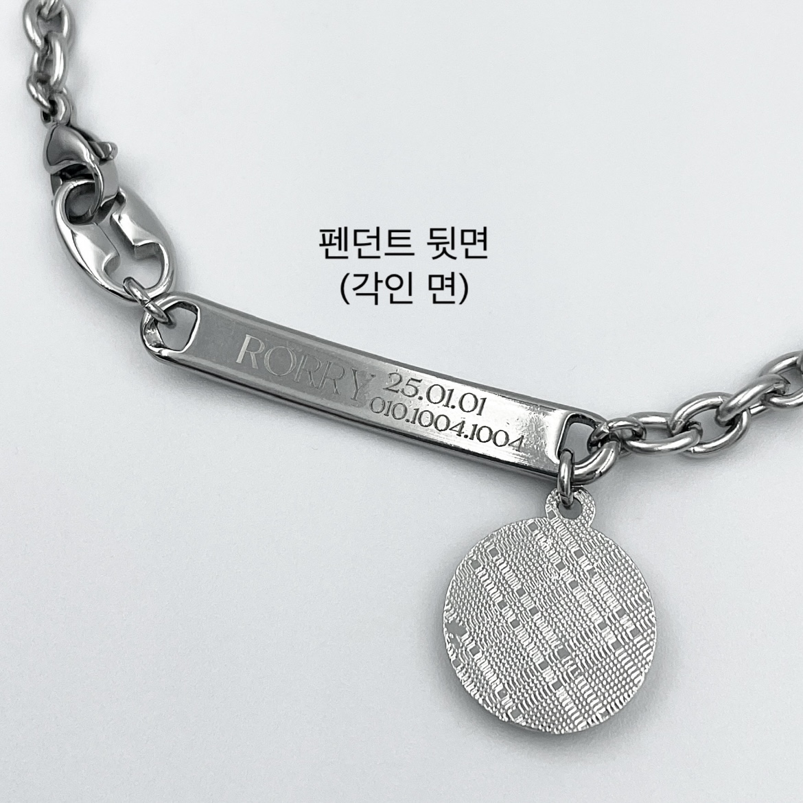 - 펜던트 양면이 아닌 한 면 (뒷 면)에 각인되는 점 참고 바랍니다.