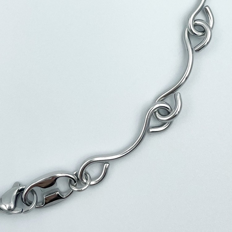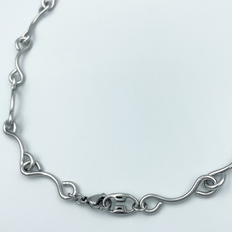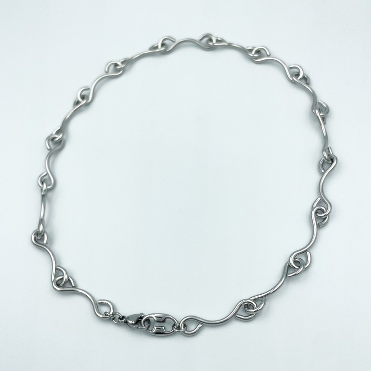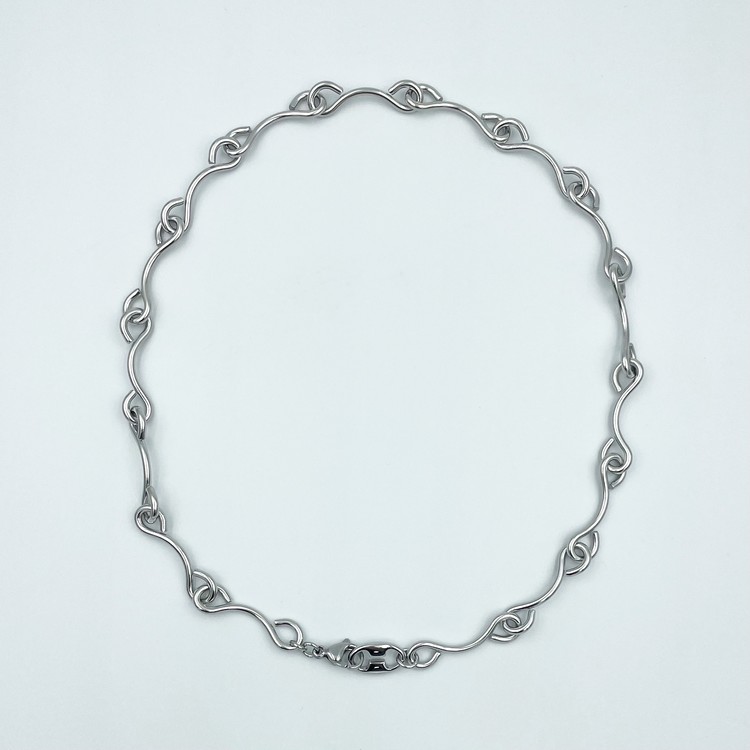 유려한 곡선 형태의 링크가 결합된 체인 목걸이.