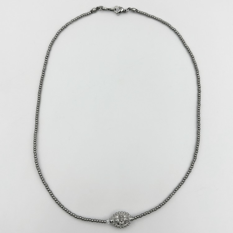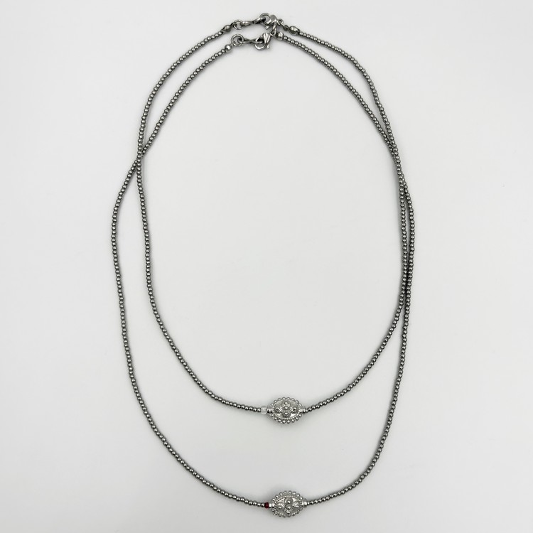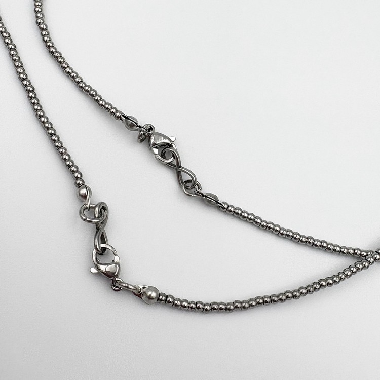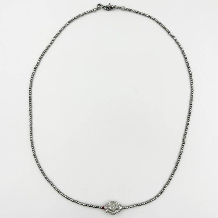 엔틱한 써지컬 참 장식의 미니 비즈 목걸이.