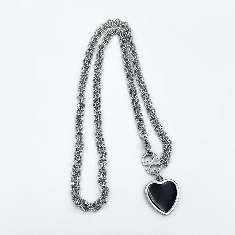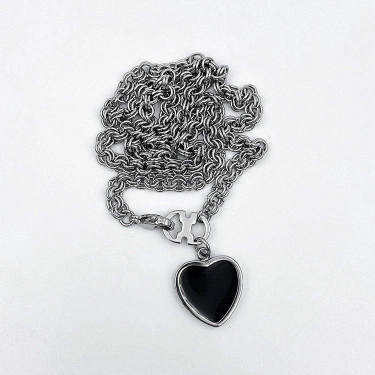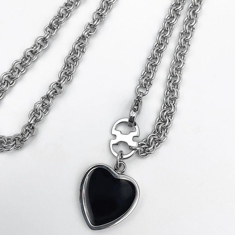 딥한 블랙 컬러가 돋보이는 하트 펜던트 목걸이.
